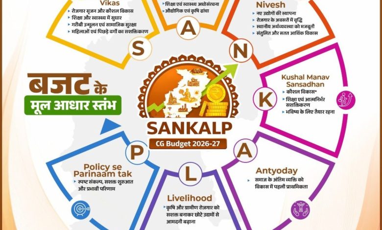 CG Budget 2026-27: रायपुर। वित्त मंत्री ओपी चौधरी ने वित्त वर्ष 2026-27 के लिए 1 लाख 72 हजार करोड़ रुपये का बजट पेश किया है, जो अब तक का सबसे बड़ा बजट हैं। इस वर्ष का बजट SANKALP थीम पर आधारित है, जिसका उद्देश्य प्रदेश के समग्र और संतुलित विकास को नई दिशा देना है।